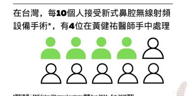 黃醫師的微創鼻塞過敏手術臨床資料庫自從2023年5月啟用之後,於2025年3月正式有登記手術案例已突破超過1000例。原廠供應商提供黃醫師團隊使用設備占比已經來到全台灣38%,為全台灣此手術第一優先選擇。